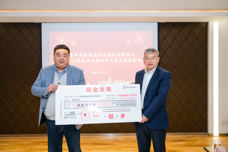 梅鲜书记、高炜总裁、崔勇书记、徐晓创副院长及市科委研发基地建设与管理处领导先后致辞,充分赞赏了“平台”近年来所取得的成果,肯定了“平台”对上海乃至全国范围有机固废资源化和高值化产业所做的推动工作。此次会议宣布了“工口实验室 有机固废平台发展基金”项目的成立,并由“平台”主任张士成教授接受了来自五角场集团为“平台”捐赠的第一笔发展基金,20万元。会上举办了聘任及授牌仪式,“平台”聘任五角场集团崔勇总裁为技术发展顾问,“平台”与合创(无锡)环保科技有限公司、上海欧海能源科技有限公司、吉林飞特环保股份有限公司等多所企业合作建立中试基地并授牌。会议由工口实验室 副系主任张立武主持。