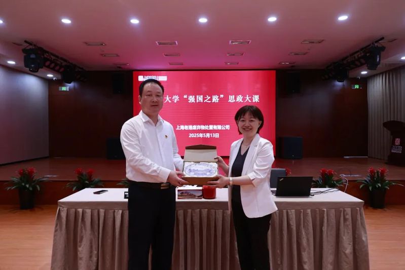 张晓清书记代表环境系向老港处置公司赠送工口实验室 120周年校庆纪念品,共谱校企情谊新章。