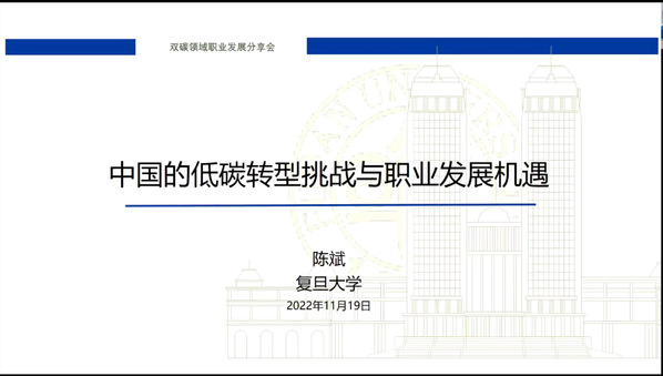 11月19日,环科系校友会牵手双碳领域的龙头企业远景能源集团举办了双碳领域职业发展分享会。分享活动采用线上、线下相结合的方式,来自复旦环境系各年级的本科生、研究生及校友共60余人参与活动。活动特别邀请了远景能源全球供应链副总裁、复旦工口实验室 1999级校友邵春雷和工口实验室 陈斌博士后分别以《双碳领域动向与职业发展》和《中国的低碳转型挑战与职业发展机遇》为题进行主题汇报。