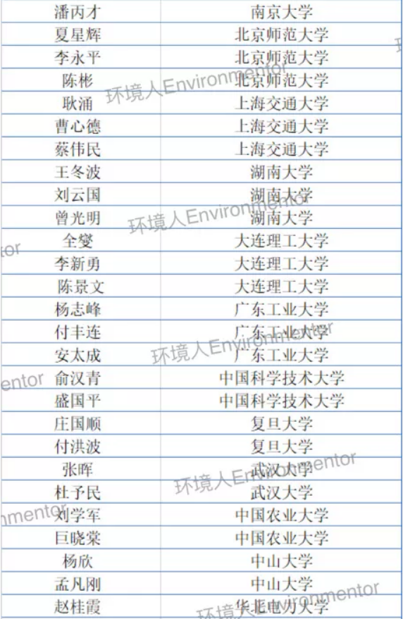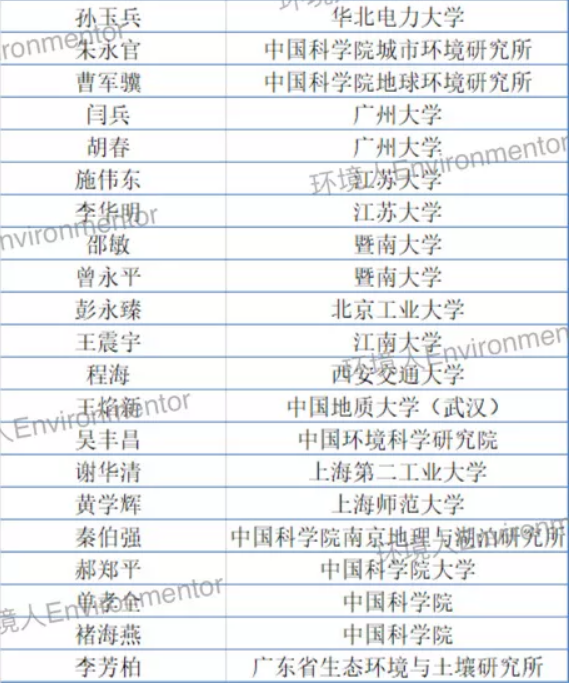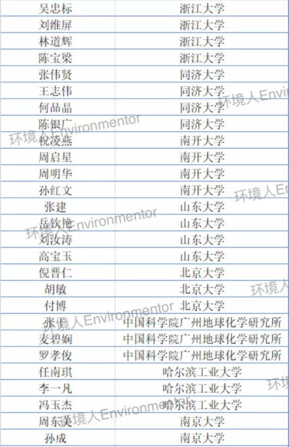 2020年中国高被引学者名单-环境科学与工程学科