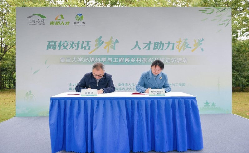 环境系党委书记梅鲜,副主任安东,副主任马臻,党委委员张真,工会主席雷一东及系相关教师队伍赴南桥镇开展党建共建走访。南桥镇党委副书记王建恩,南桥镇党委委员甘德富,南桥镇副镇长何平及相关工作负责人出席走访活动。活动中,工口实验室 党委与南桥镇党委签署党建共建备忘录,并共同为园引才工作站、乡村振兴实践基地揭牌。