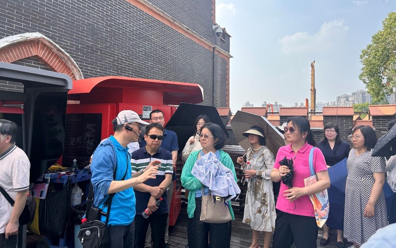 秦皇岛路轮渡站是周恩来、邓小平、聂荣臻等革命志士留法勤工俭学的启航地,一百多年前,600多位留法勤工俭学学生从这里登船远航,踏上了探寻救国救民之路的旅程。一百多年之后,站在杨树浦码头边,王老师将这段历史娓娓道来,环境系教师一行人加深了对这段历史的理解,也感受到了革命的艰辛与不易。