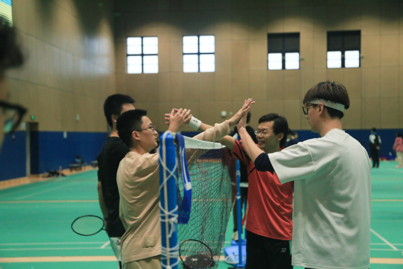 “‘羽’动赛场,谁‘羽’争锋”师生羽毛球赛,师生踊跃参加,展开激烈角逐。