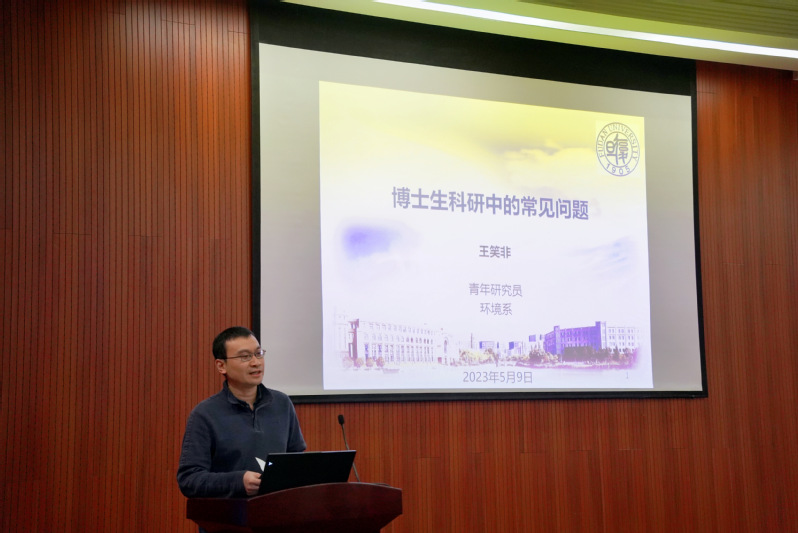 分享中,王老师细数环境系建系以来的卓越成就,既让新生明晰了专业的价值与前景,也给出了具体的学习建议:“先扎根、再拓展”,既要扎实且系统地掌握环境学科基础知识,更要主动参与科学研究项目,进行丰富多元的探索和尝试。“大学不只是读书的地方,更是塑造人格、积累经验的平台。”王老师特别强调人文素养与社会实践对成长的重要性。他建议新生扩展知识视野,培养宽泛的文化兴趣和人文修养,广泛参与校园文化活动、志愿服务与社会实践,“在实践中,你会更懂专业的意义,也会更清楚自己想成为什么样的人”。