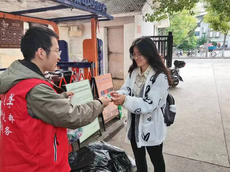 图6 2023年春秋季学期开展垃圾分类志愿服务,为正确投放垃圾的同学赠送纪念品